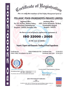 Our Company Pellagic Food Ingredients is established in the year 2012, January having its registered office in Bangalore with an aim to supply world class food ingredients with innovative approach to cater the needs of various food manufacturers within India and overseas. Our Company’s approach to our clients with never ending QUEST of giving total solutions by means of providing Quality products being sourced with an Unprecedented reach to our sourcing abilities you can rely on and the confidence of dealing with a company that stands solidity behind the product it deals with while giving Efficient service through a strong Supply Chain with the aid of adequate Technical solutions with the help of knowledge we have and from our expertise, who are available all the time from around the world.